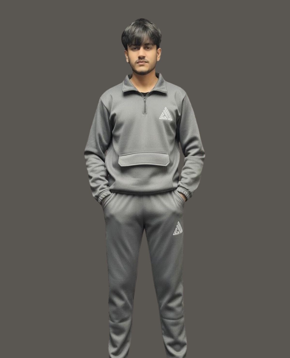 Dark Grey Quarter-Zip Tracksuit Details